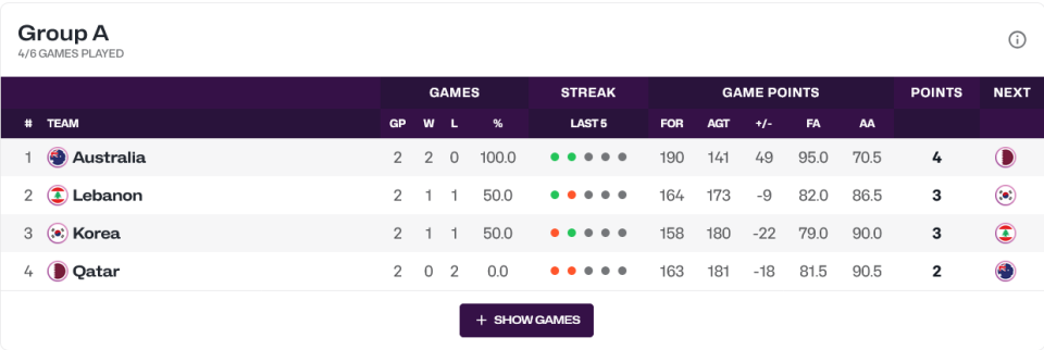 A组前2轮比赛战罢,澳大利亚队取得2连胜,连续击败韩国和黎巴嫩,末轮对战卡塔尔队。澳大利亚队已经锁定小组第一,提前锁定八强席位。